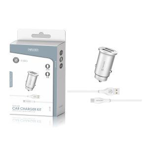 TZ-2201I Silver 2USB/2.1A 1M IP CABLE CAR CHARGER PACK